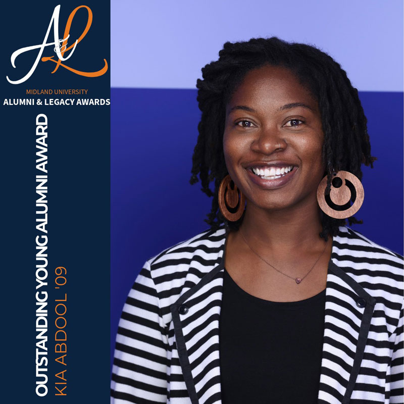 Abdool is being honored with the Outstanding Young Alumni Award during Midland’s Homecoming weekend. She will be recognized during the Alumni & Legacy Awards Brunch on Sunday, Sept. 28th at 11 a.m. at the Wikert Event Center.